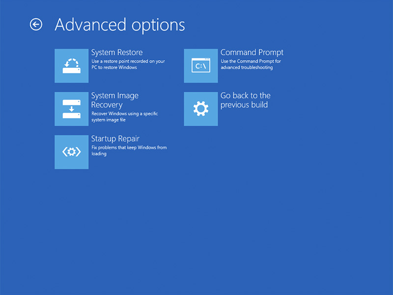 If you choose the repair option, you will end up at a Troubleshoot screen where you can choose to reset your PC and re-install windows (you can either keep or remove your files), or access more advanced troubleshooting options. For the latter, there are options for doing a system restore (if you’ve a restore point on your PC), image recovery, running commands in command prompt, and letting Windows fix any start-up problems. You can also get to the advanced start-up options after installation via the new Settings app in Windows 10.