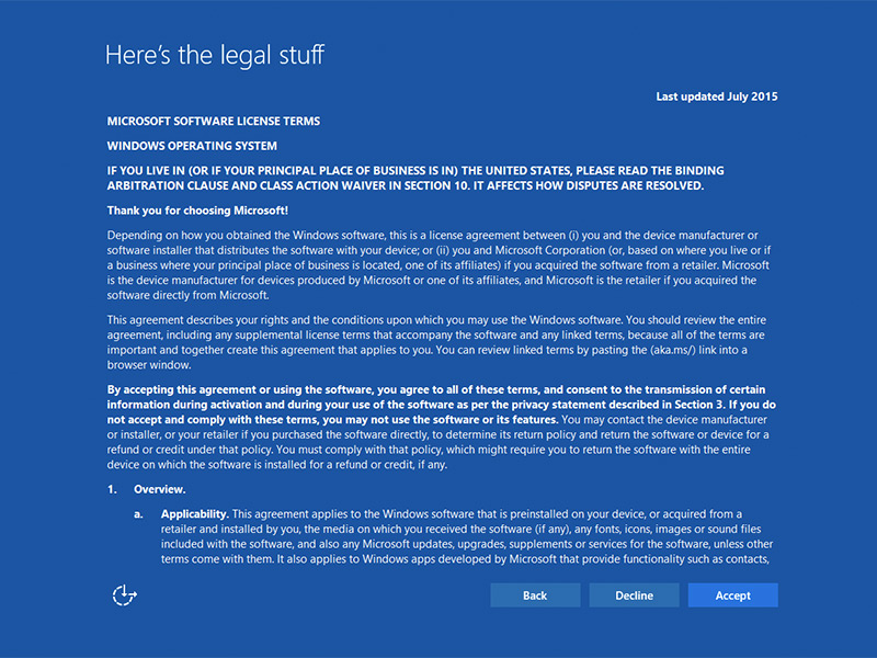 (Note: If you’re doing an upgrade, and you’re running Windows Media Center, Windows 10 will remove it.)