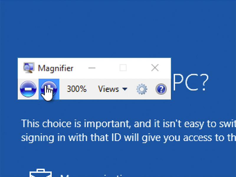 Oh, notice that little icon at the bottom left? Click on it to access an accessibility menu where you can turn on things like a narrator, magnifier, or increase the screen contrast.