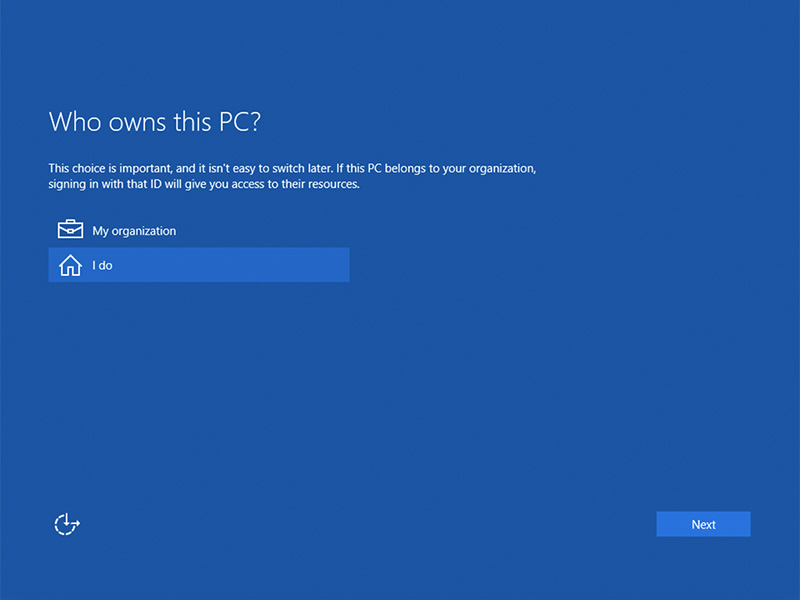 Step 11: Next, you need to specify who’s the owner of the device. You can choose to sign in with your company ID, which will give you access to your company’s resources.