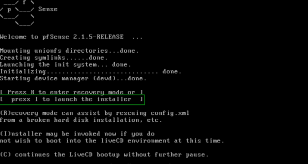 Step 7. Next, press ‘I ‘ to install fresh copy of pfSense.