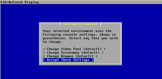 Step 8. On the next screen, it will ask you to ‘Configure Console ‘, just press ‘Accept these settings‘ to move forward for installation process.