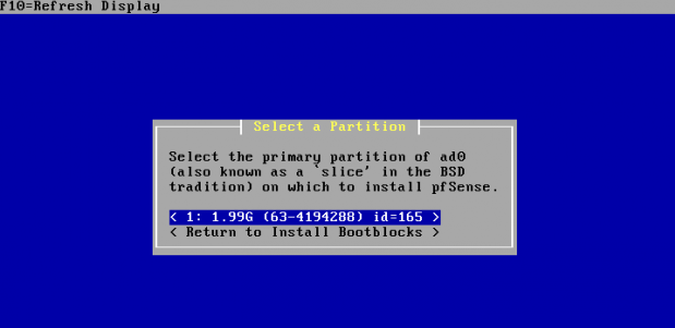 Step 9. Select a partition to install the pfSense,