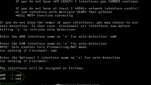 There are two interface’s emo and em1, I have planned to assign em0 as WAN and interface and em1 as LAN
