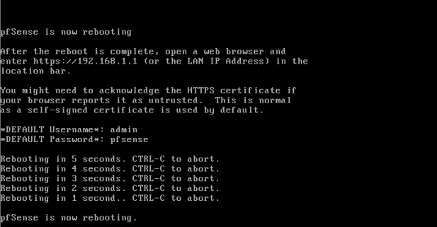Step 17.After all the above settings are performed, it will prompt you a link to access pfSense web configurator interface to configure further steps.