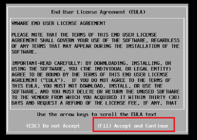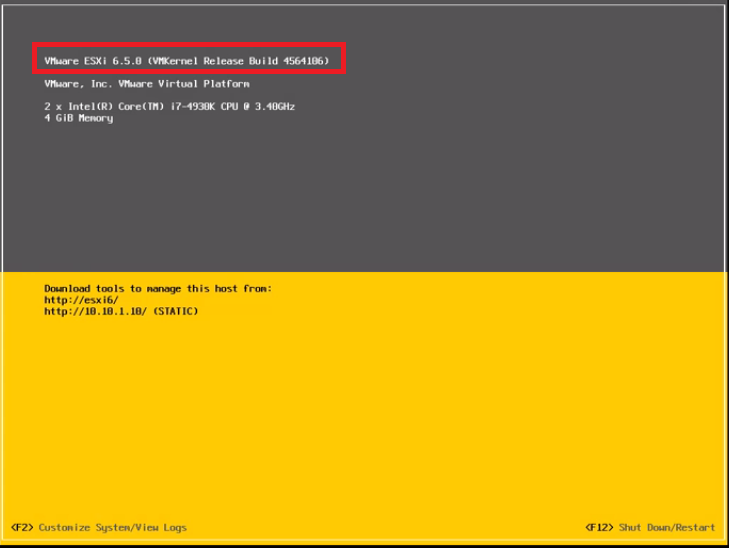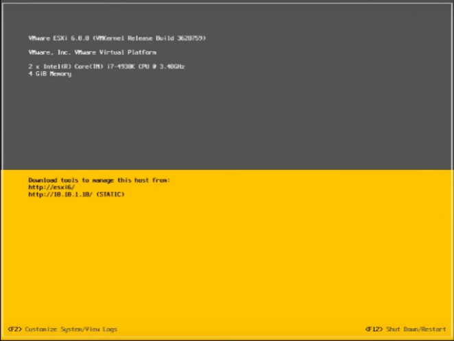 - Press the function F12 in your keyboard and restart the ESXI server.