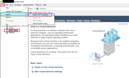 - open File–>Export–> Export as as OVF template.