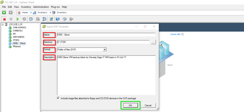 - Give some description about the backup VM and click OK button