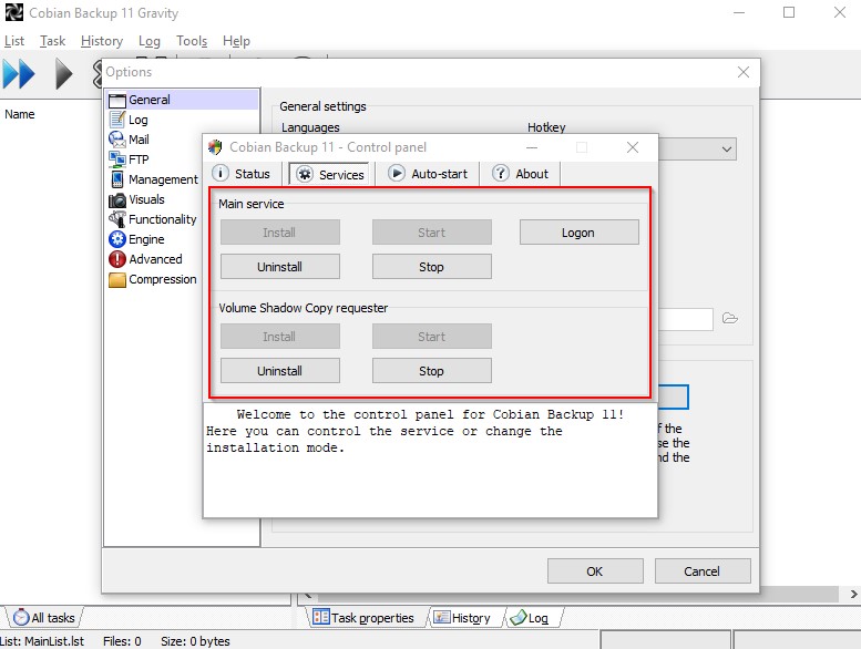 Check that is all the required services for Cobian are installed.
