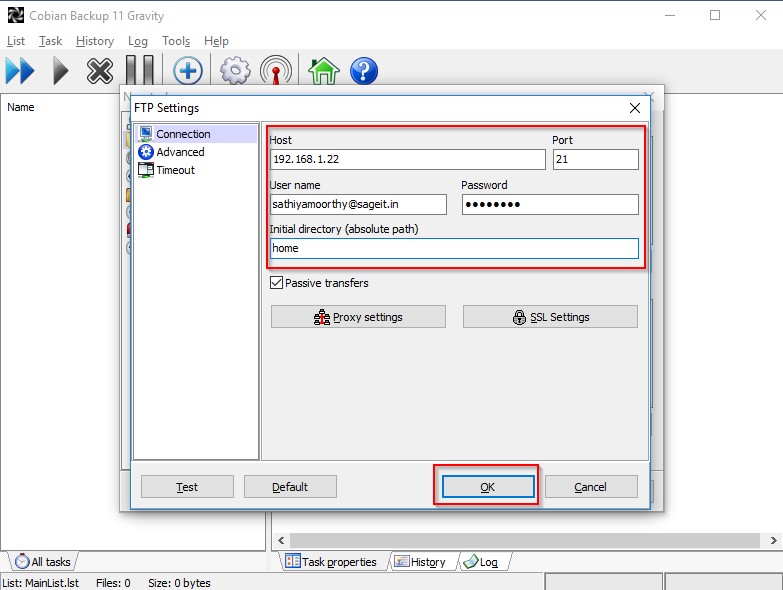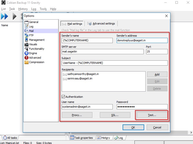 - E-mail ID to configure as SMTP in Cobian.