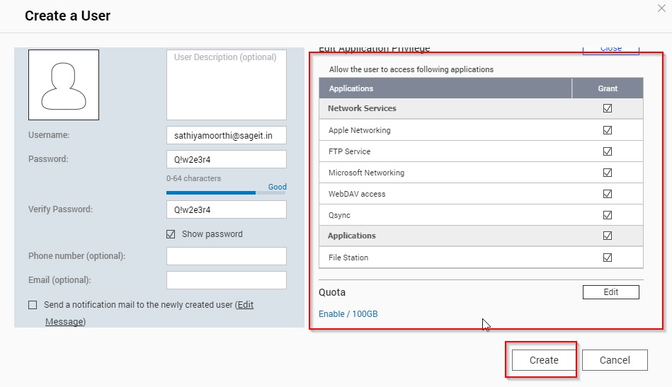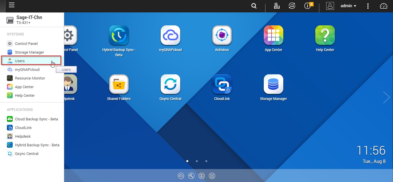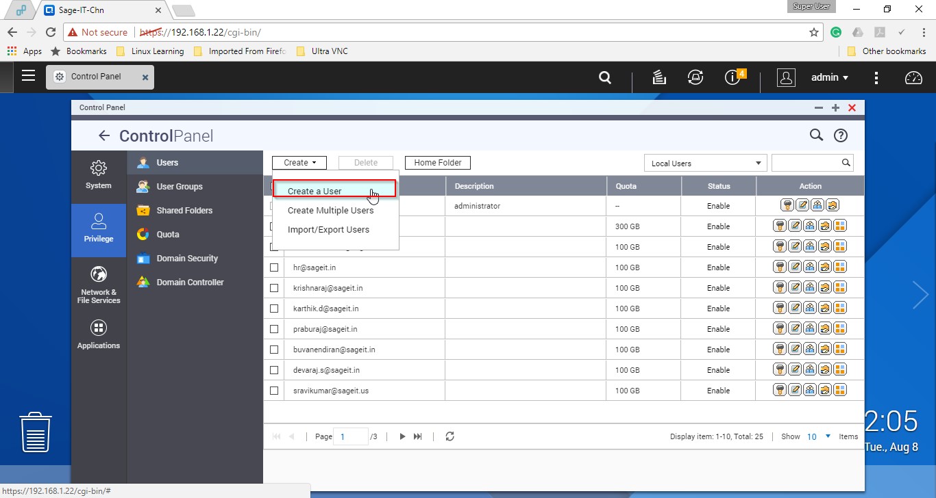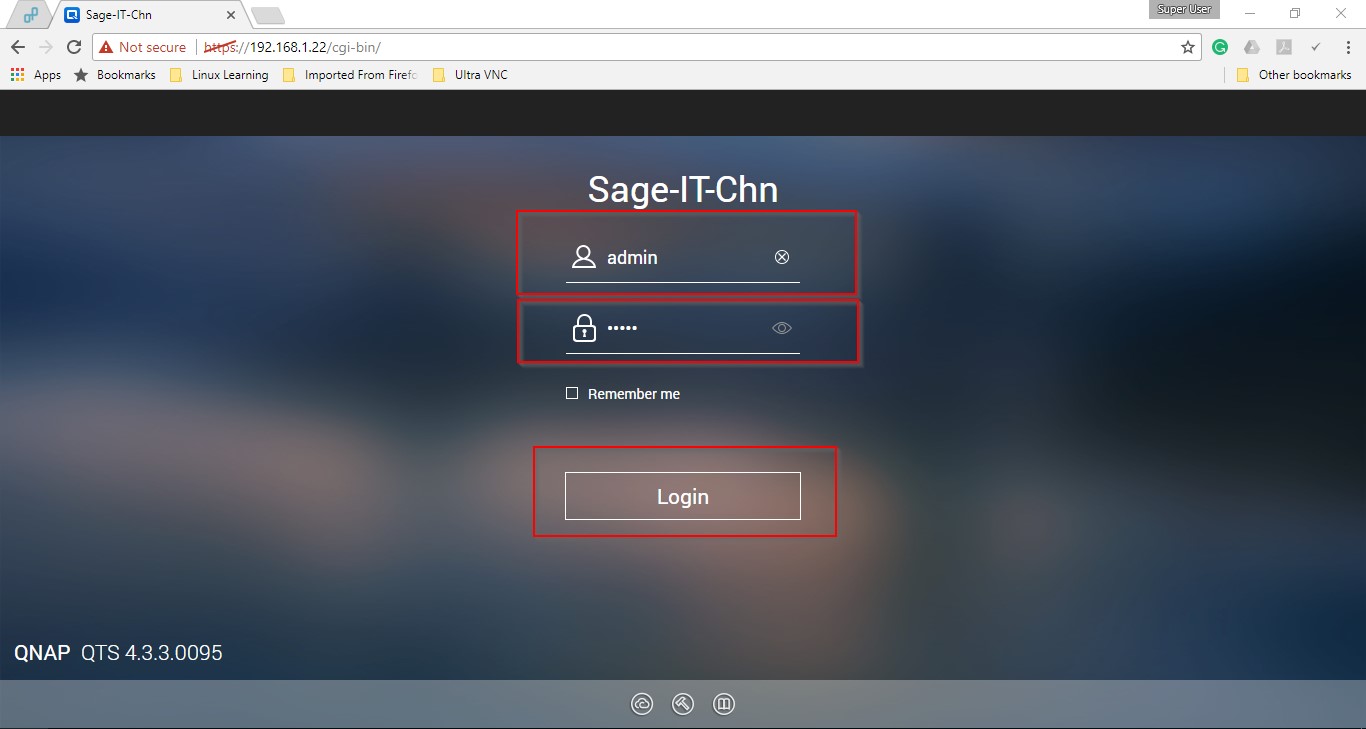 Login into the Backup Server – QNAP to create a user in the backup server.