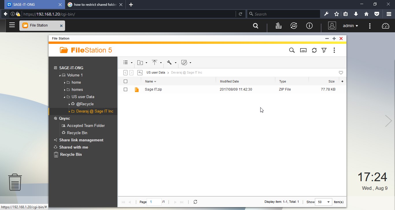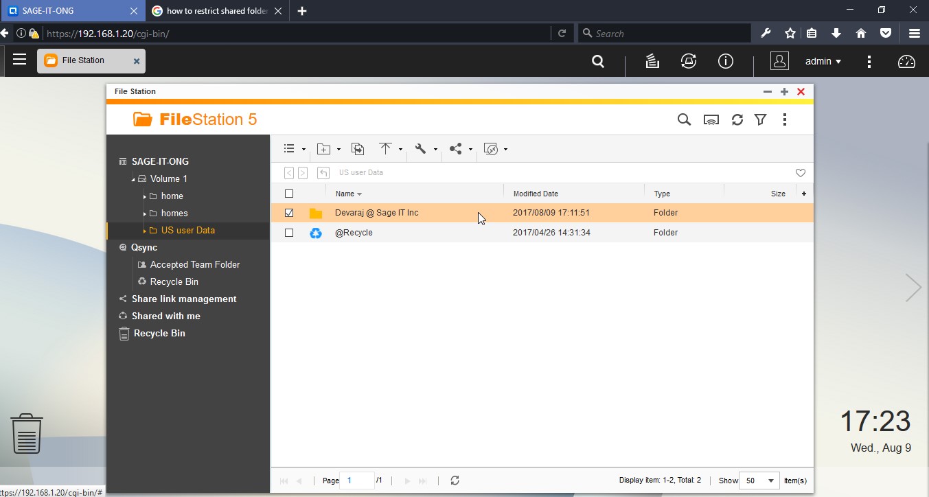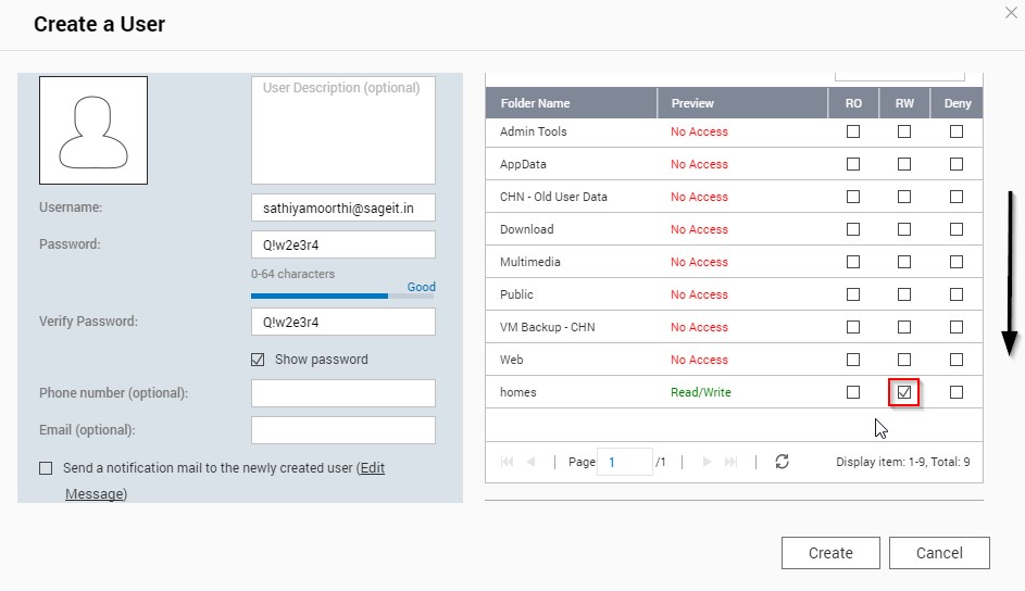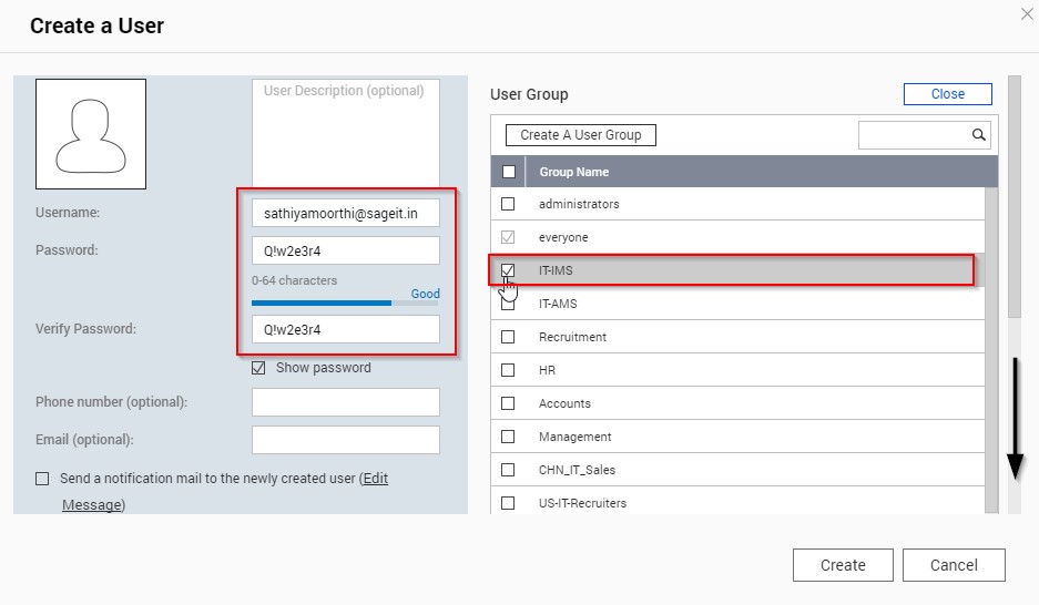 Login into the Backup Server – QNAP to create a user in the backup server.