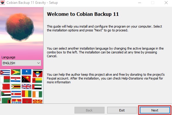 Accept the terms and conditions of Cobian Backup application.