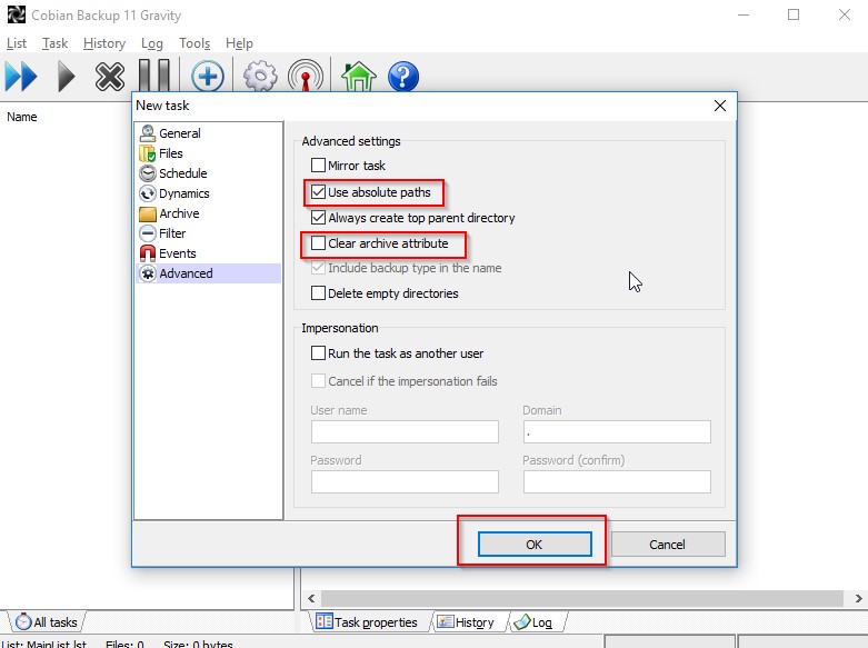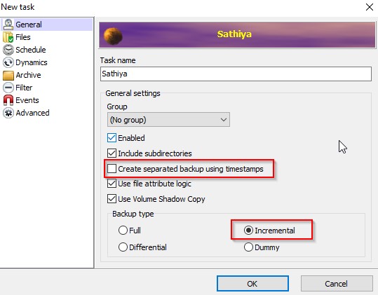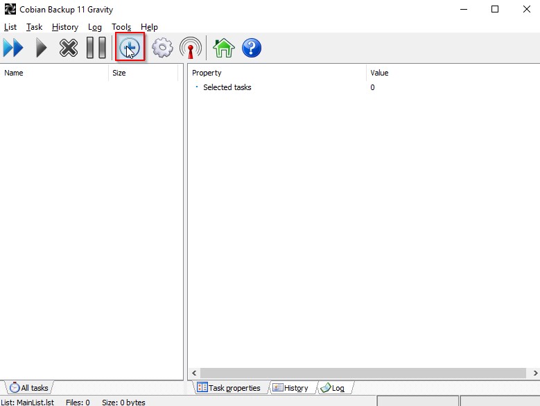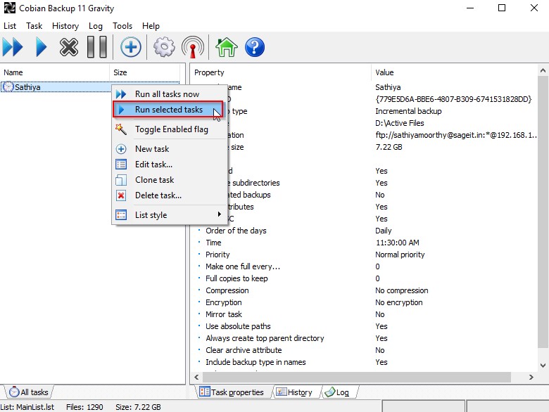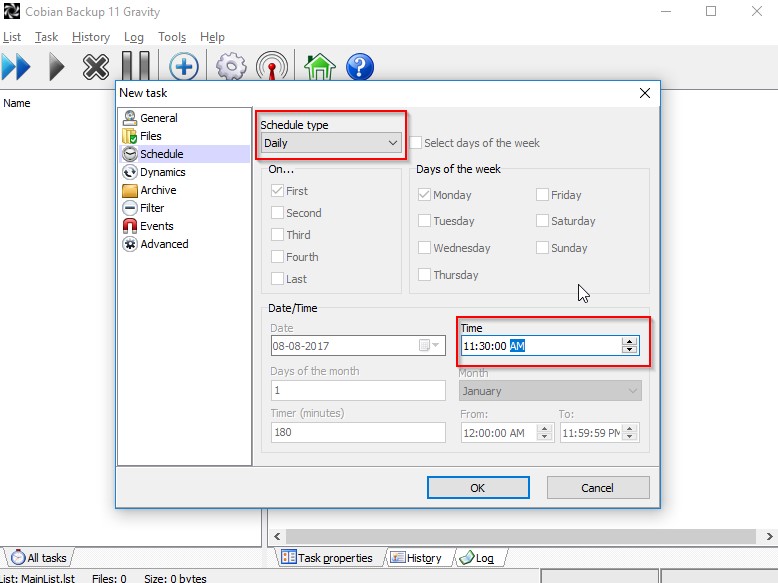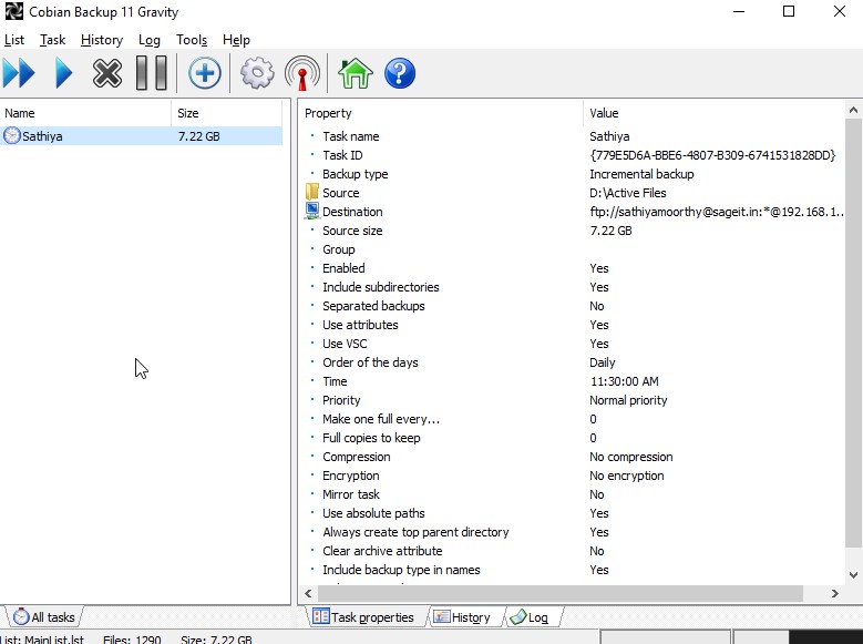 Add the new task in the Cobian application.