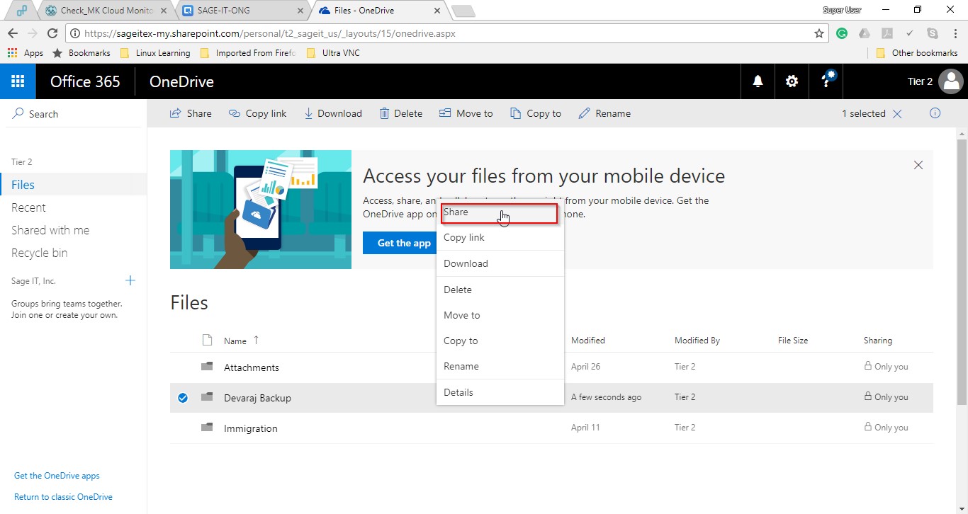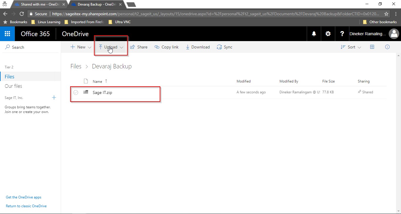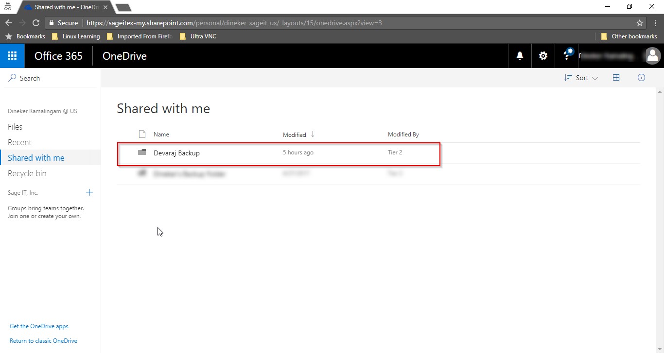 Now, let the user login one drive account, they can get the shared folder from the techinician at “Shared with me” column.