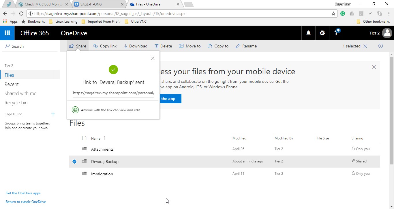 Now the folder created and shared with the user from technician end.