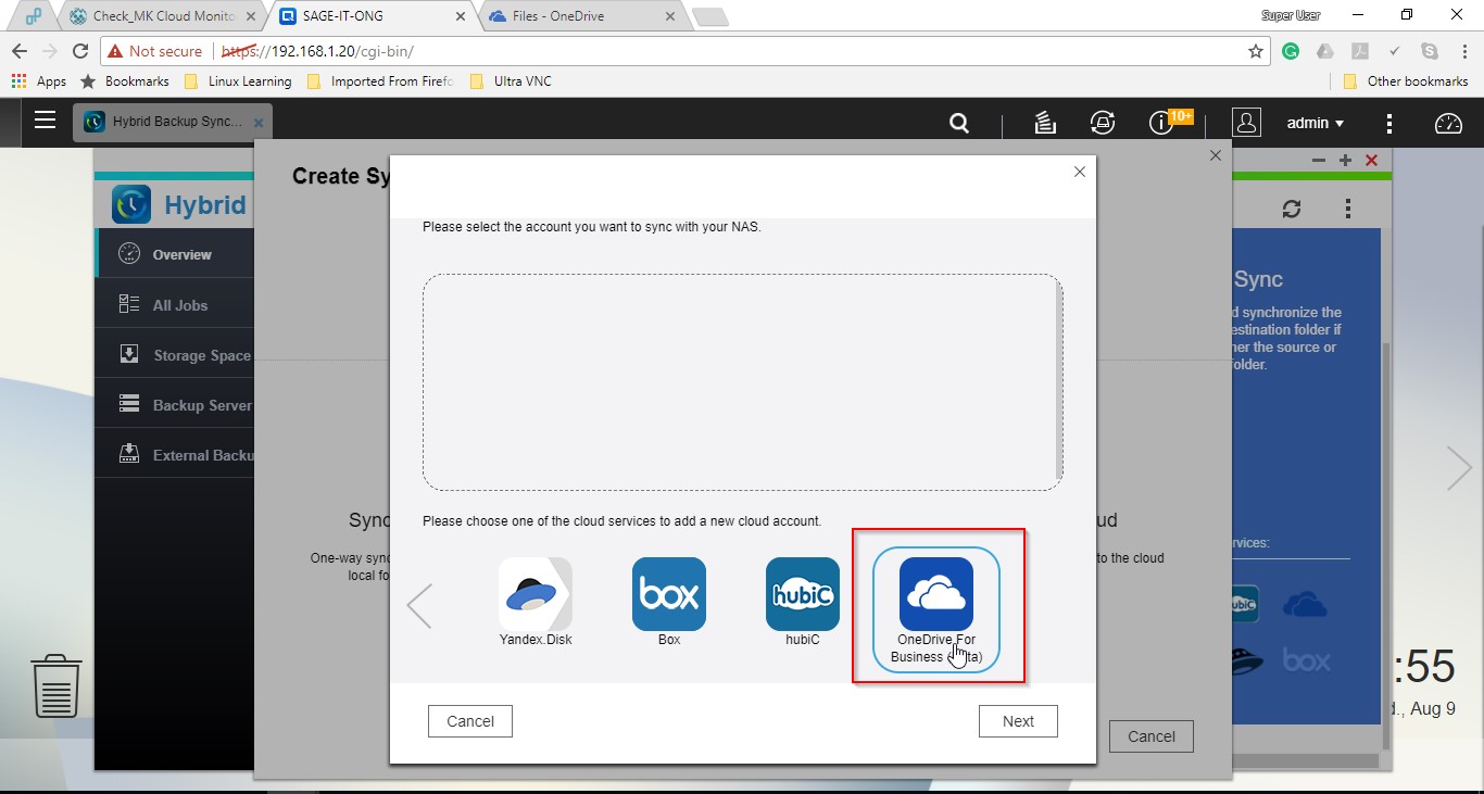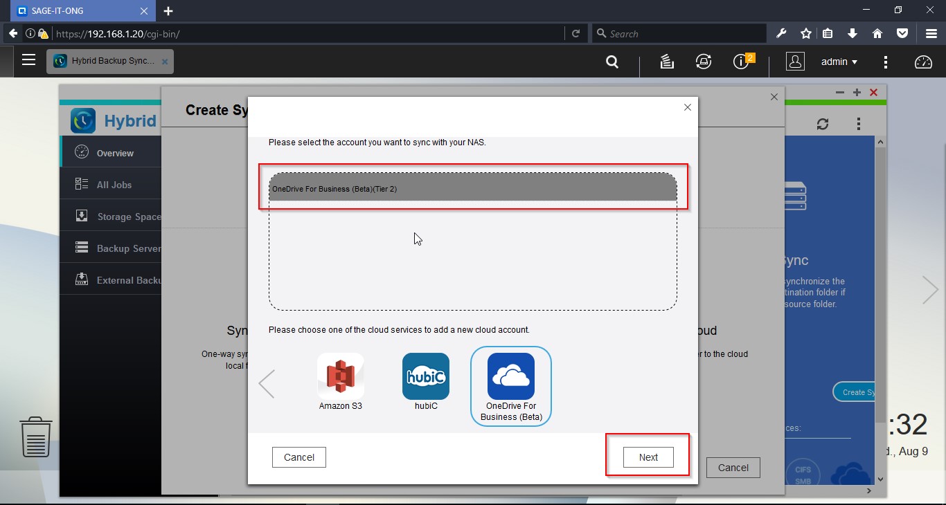 Then select the OneDrive business account you wanted to configure, technicians mail ID need to be configured in the NAS.