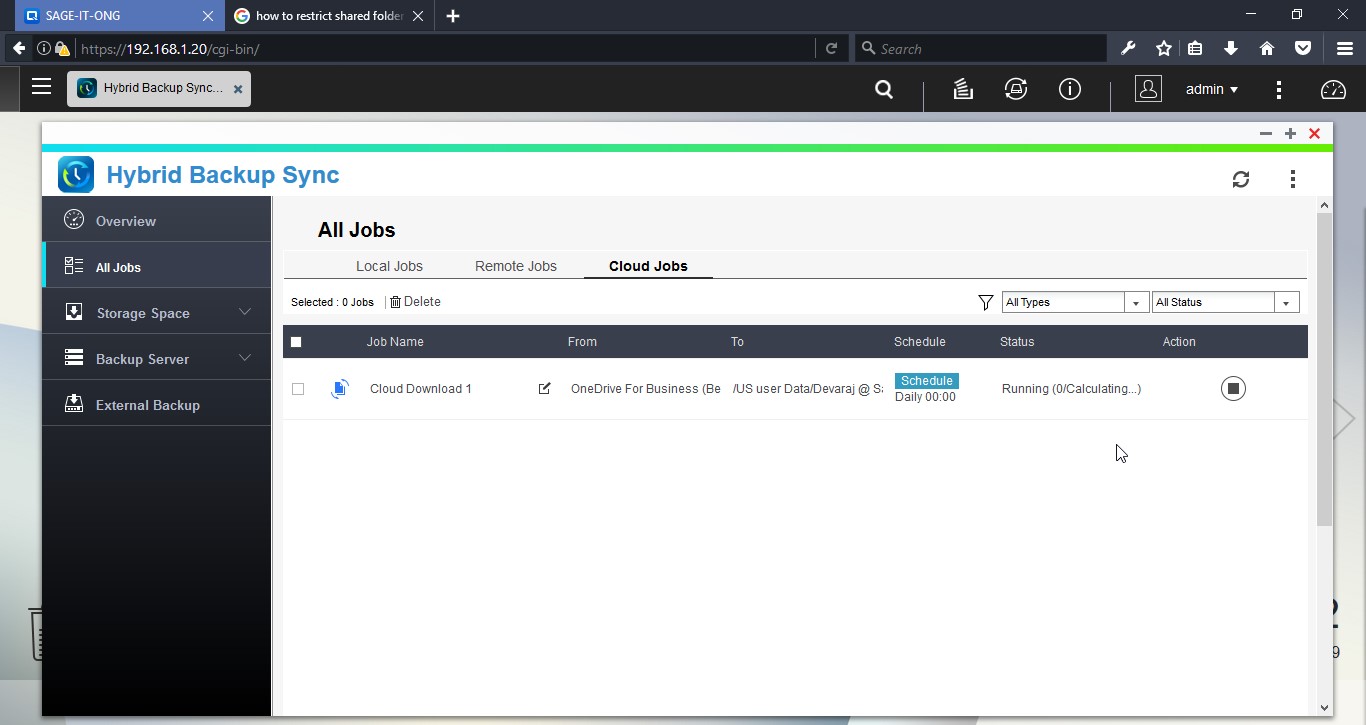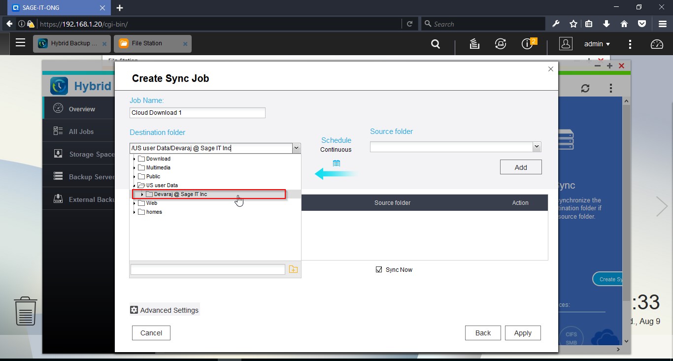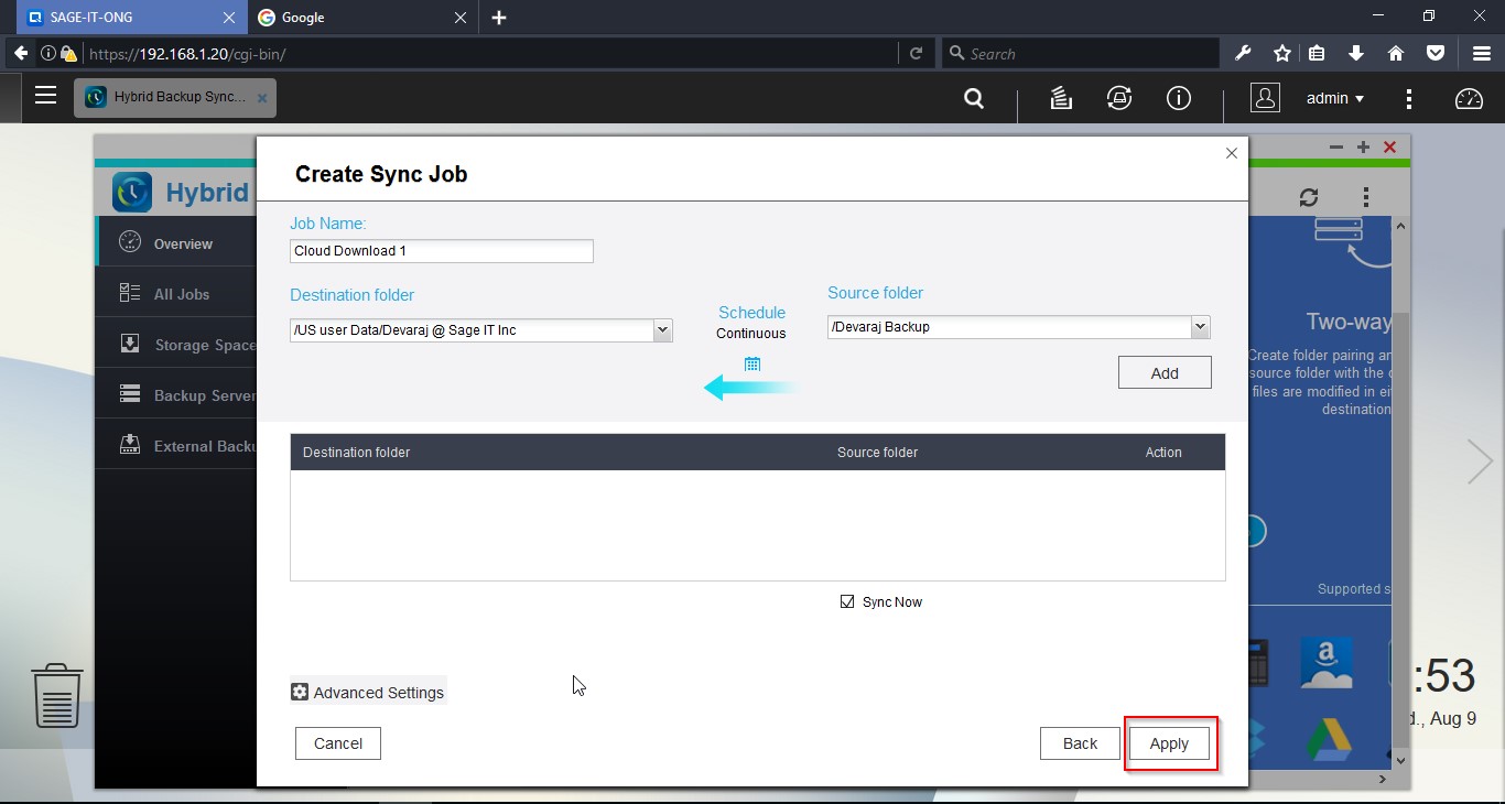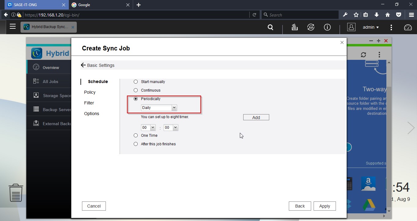 Login to the NAS device and open “Hybrid Backup Sync”