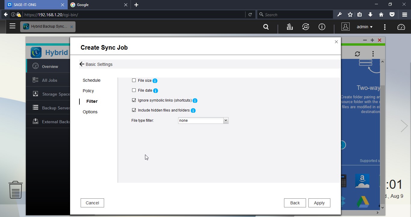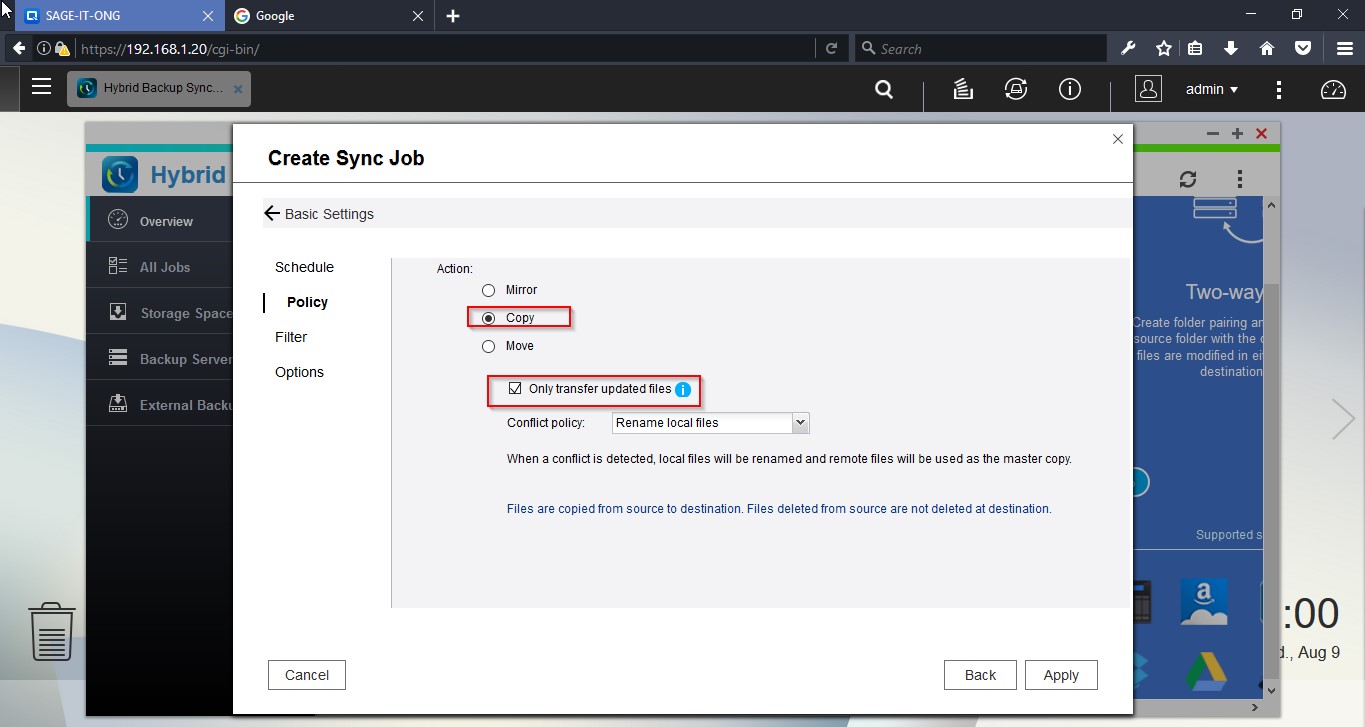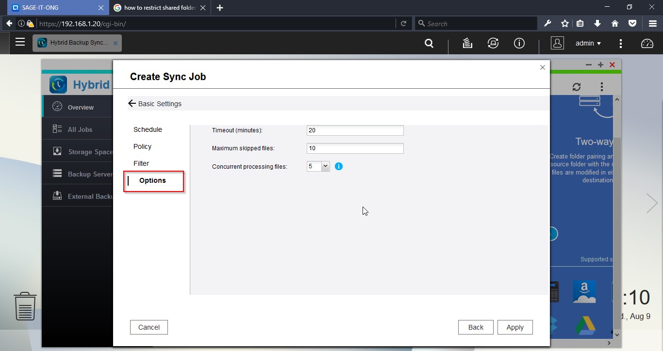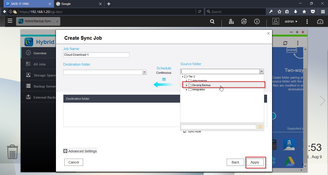 Login to the NAS device and open “Hybrid Backup Sync”