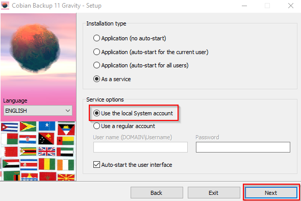 Cobian will start running in the user system. But, interface should not show for the user.