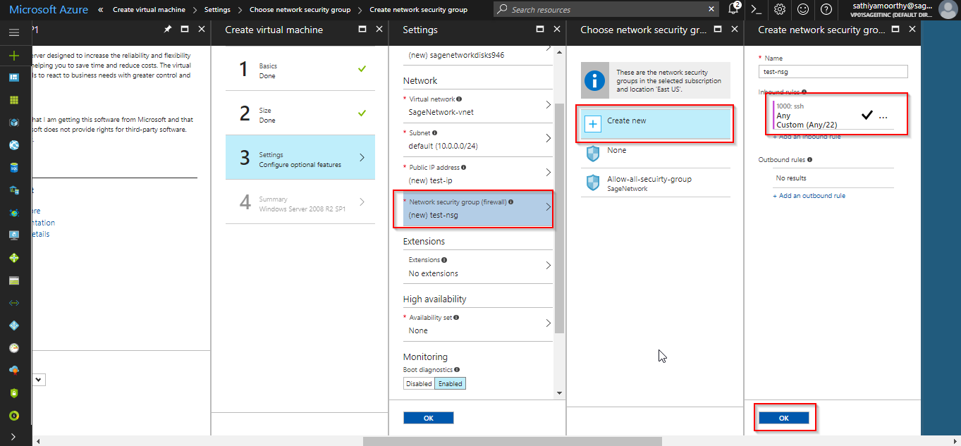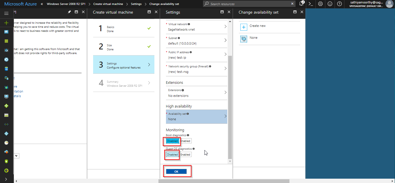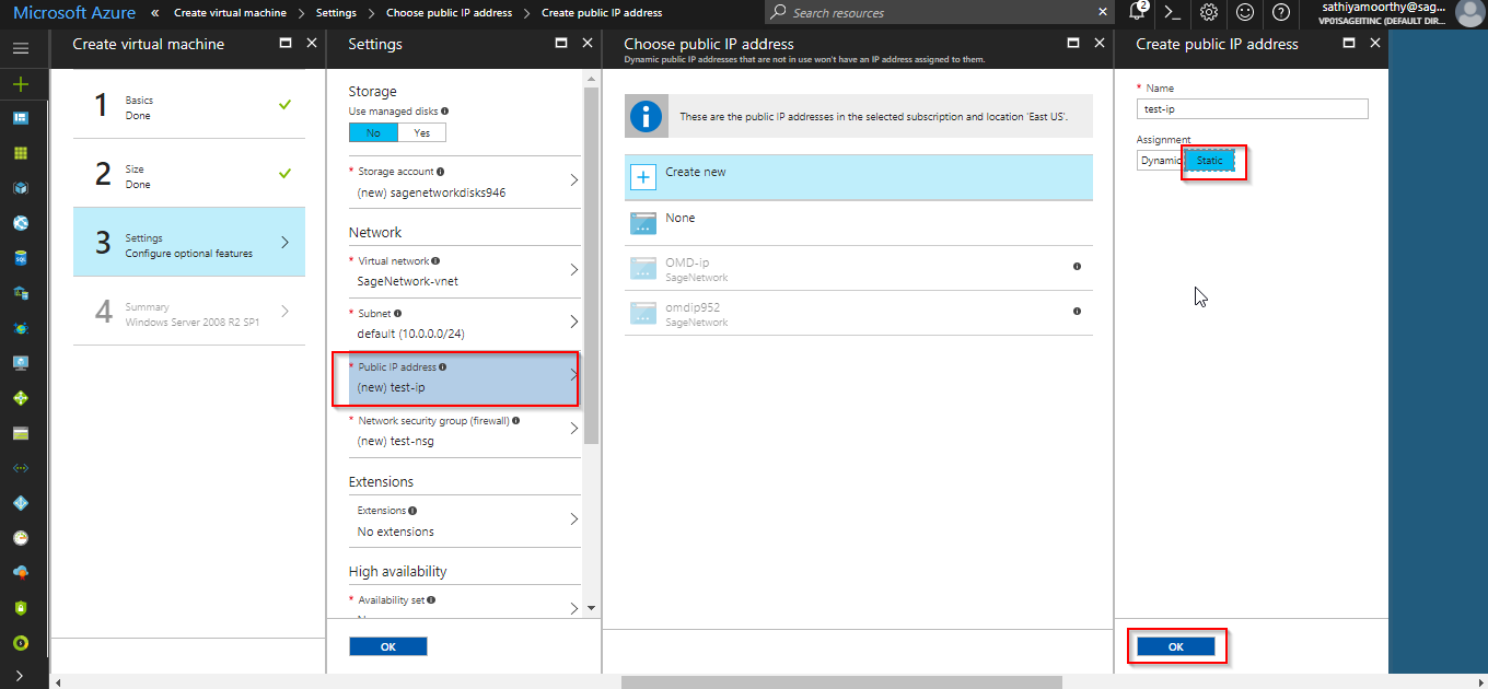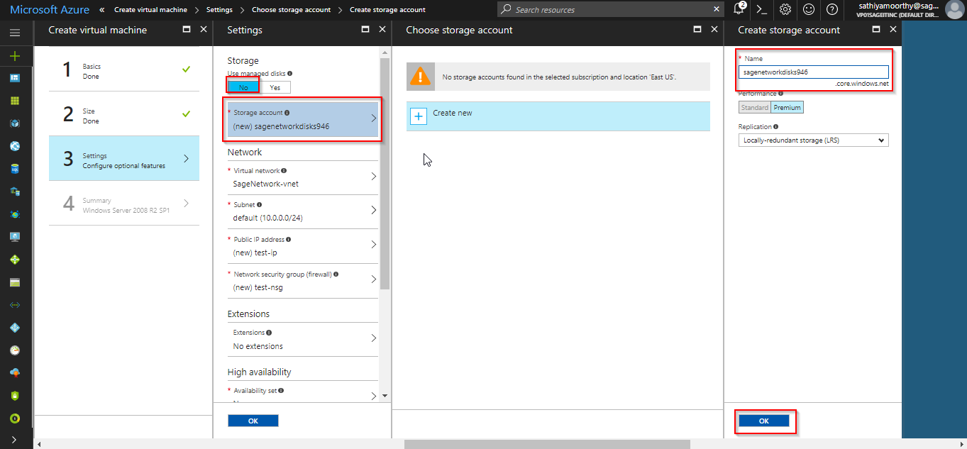 Create a new storage account for the new VM. All the VM’s are stored in VHD which is format of hyper visor. Create a virtual network if your creating network in new region. If you have already network at that location, then join that location.
